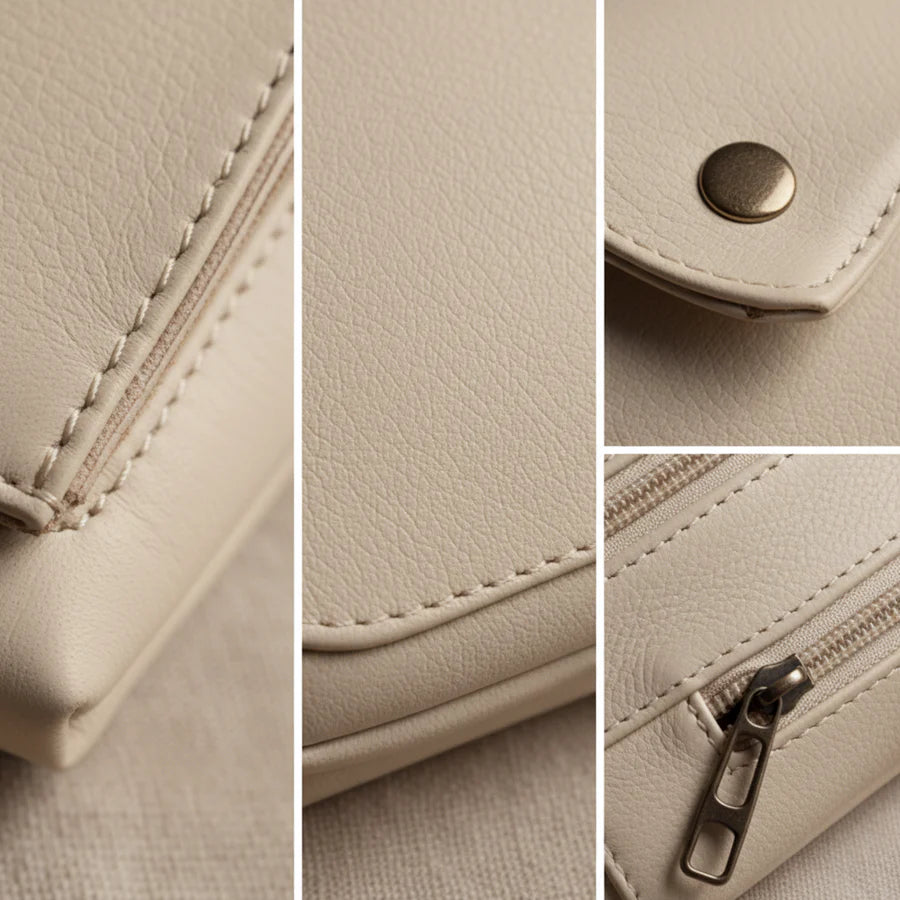 Einige Modelle – wie unsere von Le Pliage inspirierten Designs – bestehen aus 100 % Nylton, kombiniert mit hochwertigen italienischen Lederakzenten sowie gold- oder silberfarbenen Edelstahlbeschlägen für maximale Langlebigkeit.