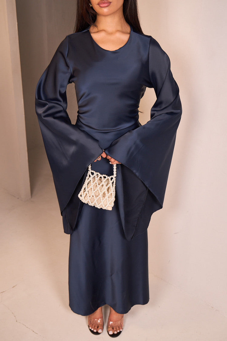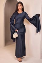 Elevate your style with our stunning Satin Elegance Dress, crafted from 100% premium satin for a luxurious, silky-smooth feel. Featuring dramatic draped sleeves and a graceful floor-length silhouette, this dress is designed to make an unforgettable impression. The adjustable tie-back detail ensures a perfect, flattering fit tailored to your shape. Available in four elegant colours, this versatile piece is perfect for formal occasions, evening events, or any moment you want to feel truly special.