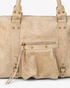 Light-coloured leather deserves a little extra care. To keep your bag looking its best, avoid contact with dark fabrics — especially denim — as colour transfer may occur. This is a natural characteristic of genuine leather and cannot be fully prevented.