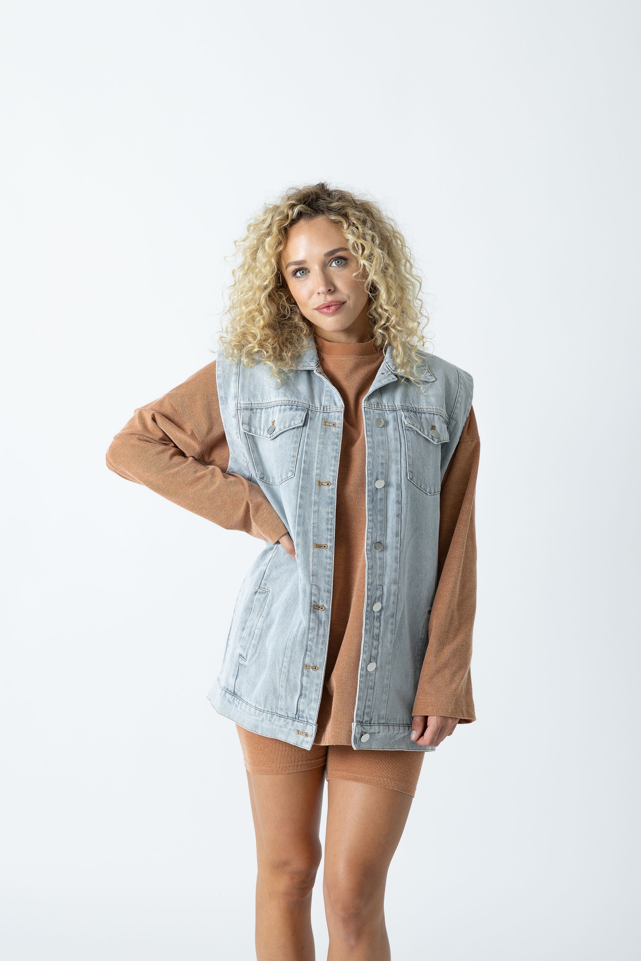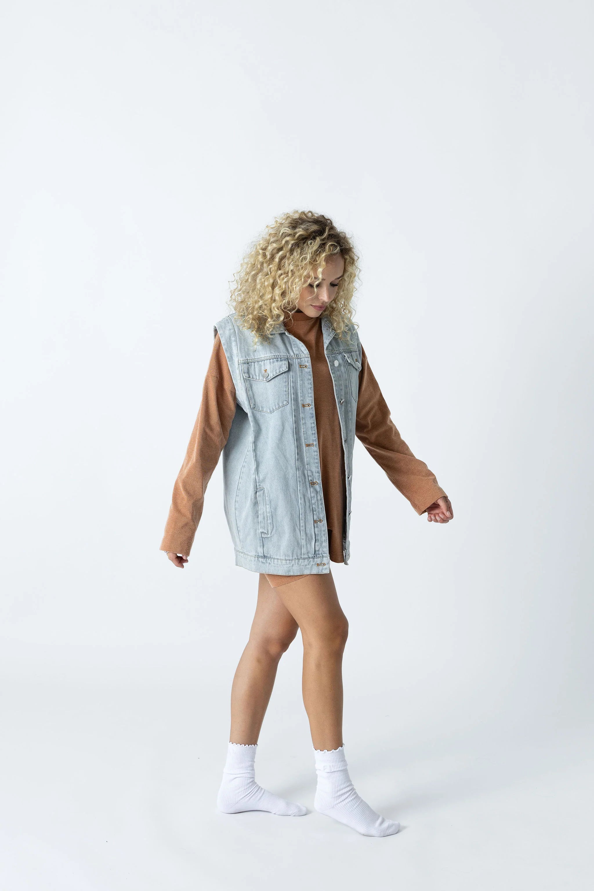 Elevate any outfit with the bold look of layered denim – the ultimate statement for Spring and Summer. Crafted from high-quality fabric in an oversized fit, this vest adds effortless edge to your wardrobe.