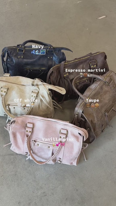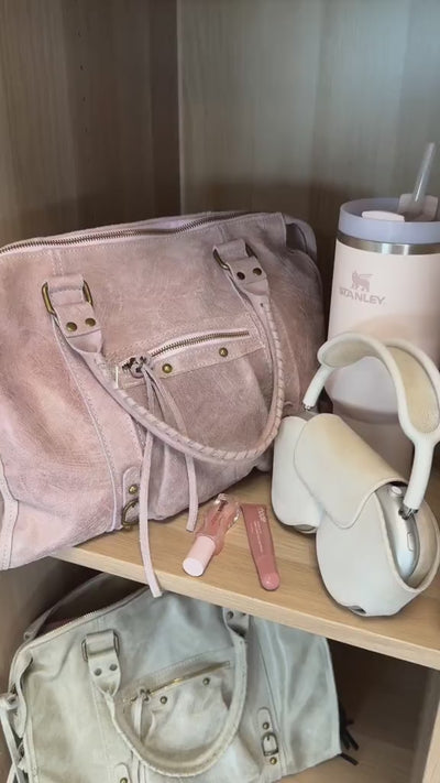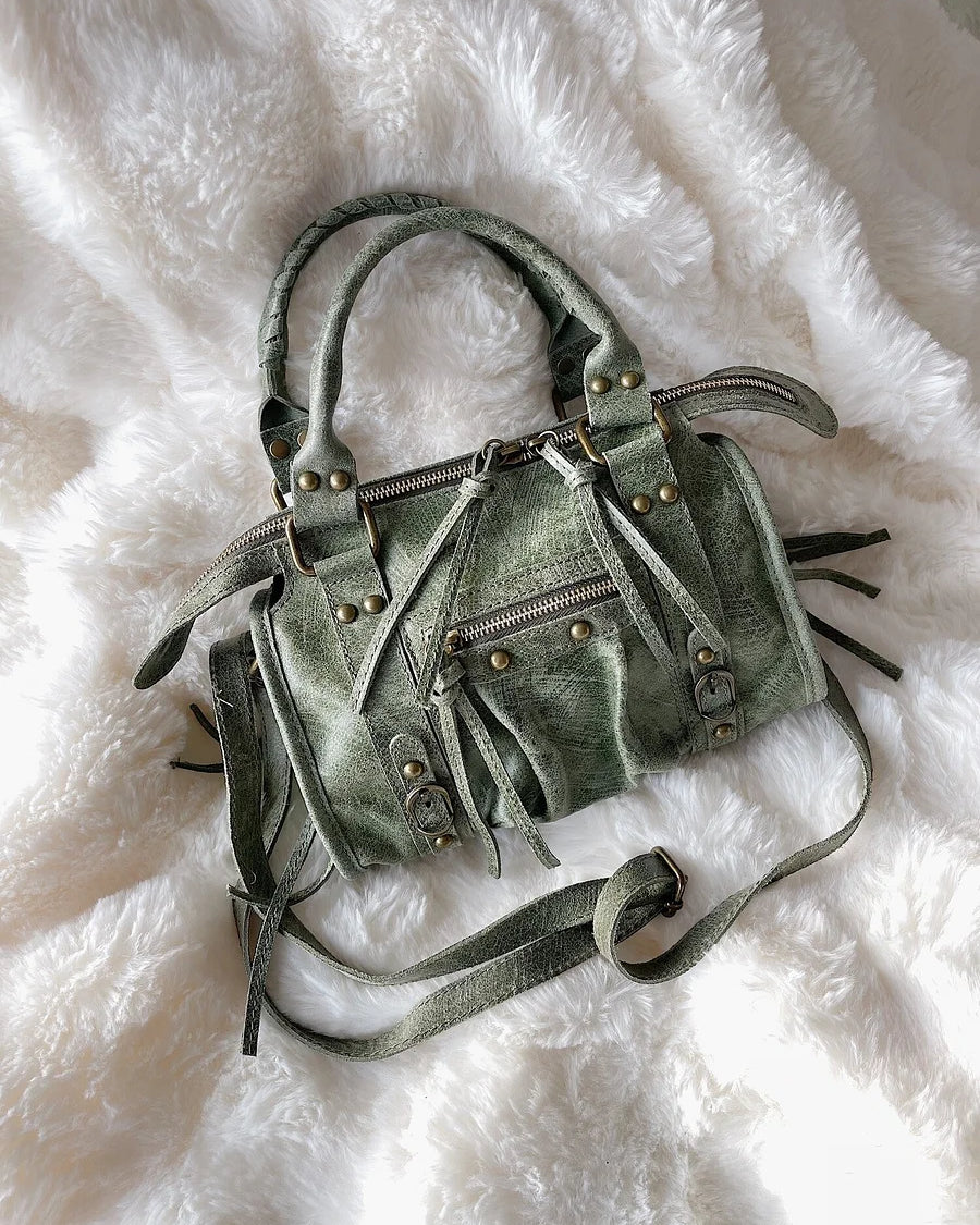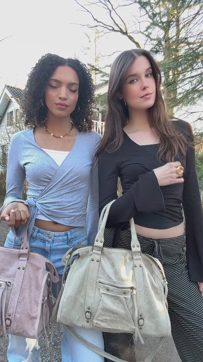 Light-coloured leather deserves a little extra care. To keep your bag looking its best, avoid contact with dark fabrics — especially denim — as colour transfer may occur. This is a natural characteristic of genuine leather and cannot be fully prevented.