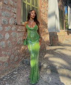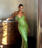 Make every entrance unforgettable with our Green Glitter Dress. Designed to dazzle, this figure-hugging silhouette sparkles with every move, catching the light from every angle.