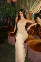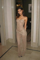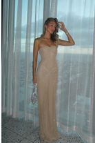 Step into the spotlight with the Jenna Maxi Dress – the ultimate blend of elegance and allure. Designed for unforgettable nights, this champagne-toned showstopper features a curve-hugging silhouette with a subtle shimmer that catches the light with every move.