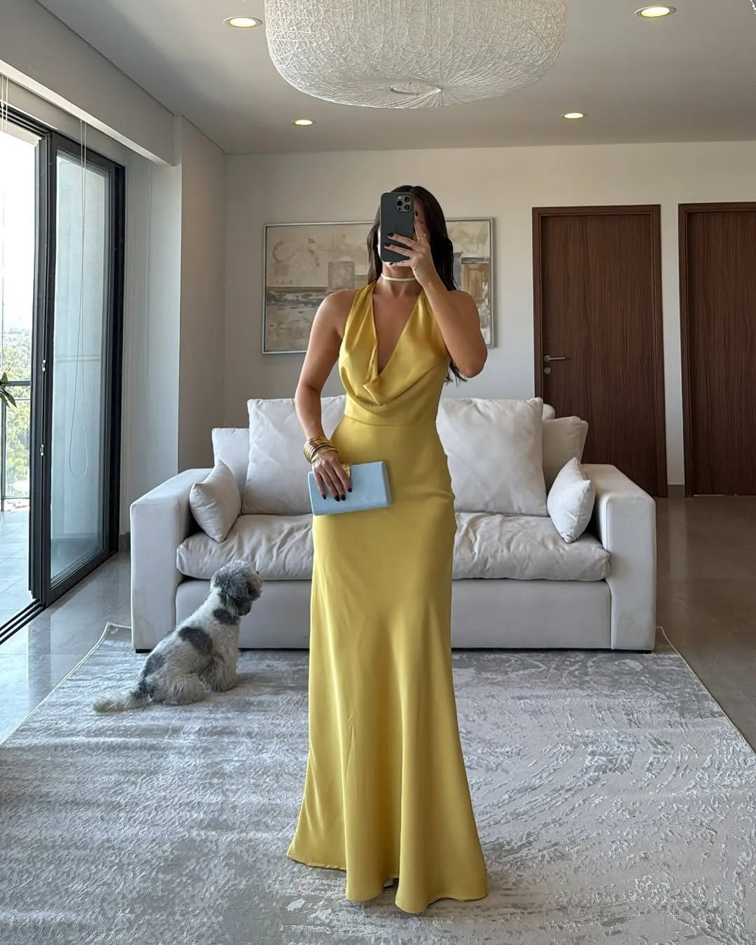 ✅ Elegant cowl neckline with halter straps